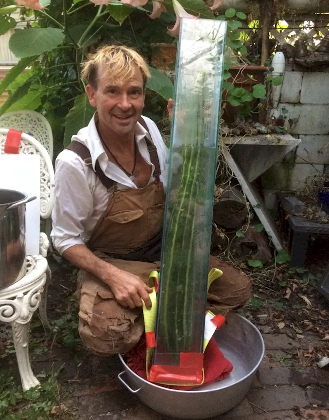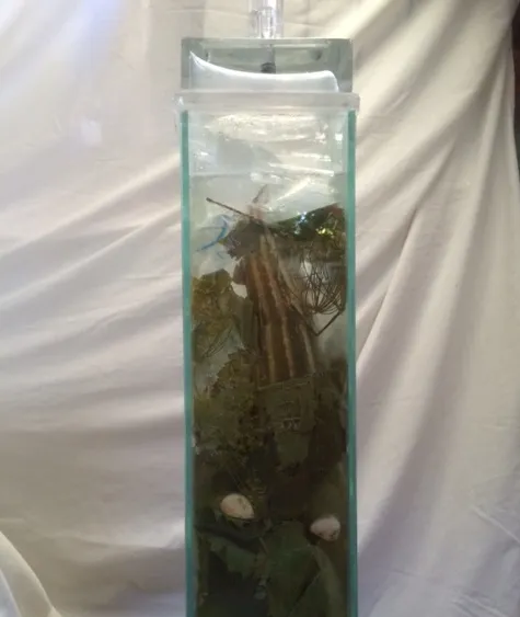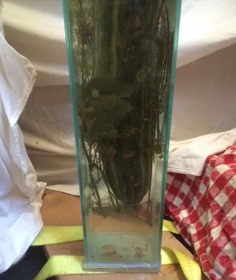 Glass shop fresh fermentation vessel by Kelowna Glass. Those guys dropped everything to build a vertical aquarium 6” x 48”. Larry the cucumber’s new home to make his transformation into a giant fermented pickle.