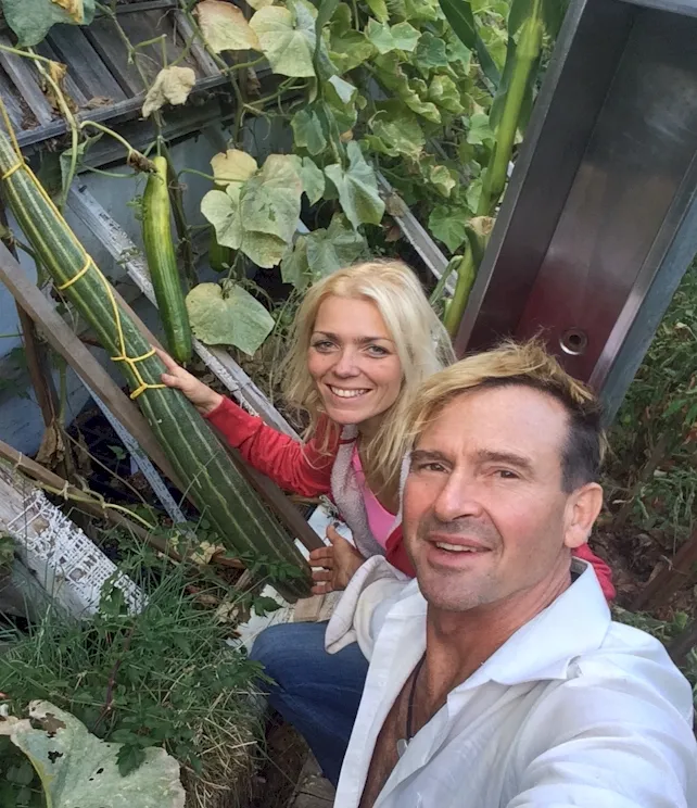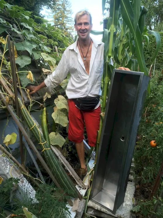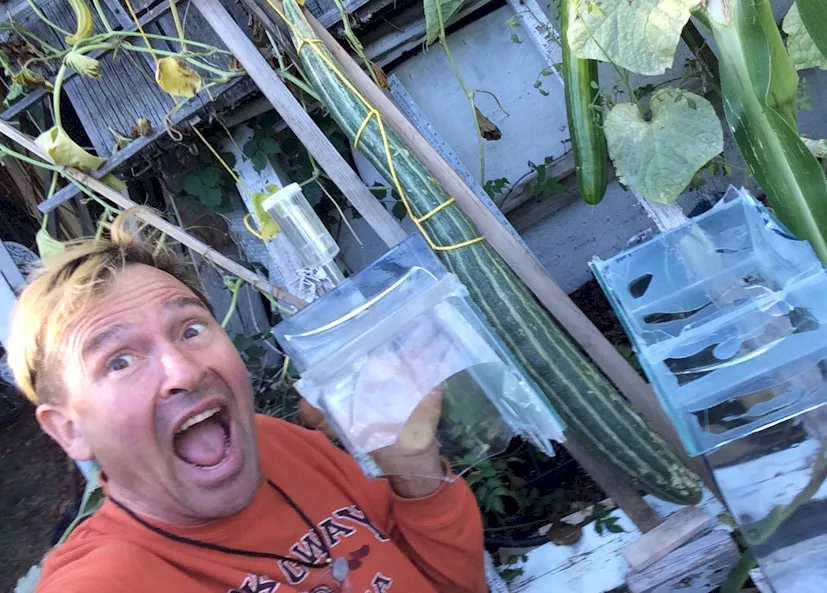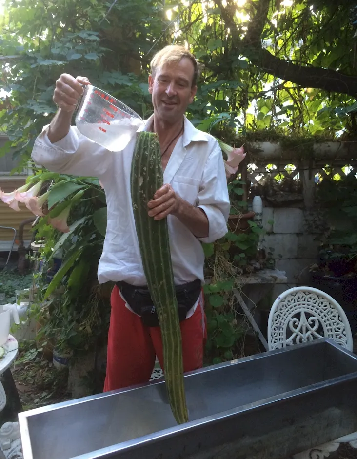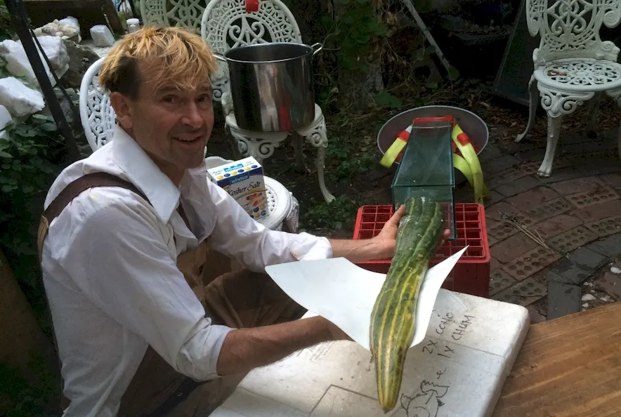 Sept 1. Big Larry & fermentation vessel - Just about ready to pickle