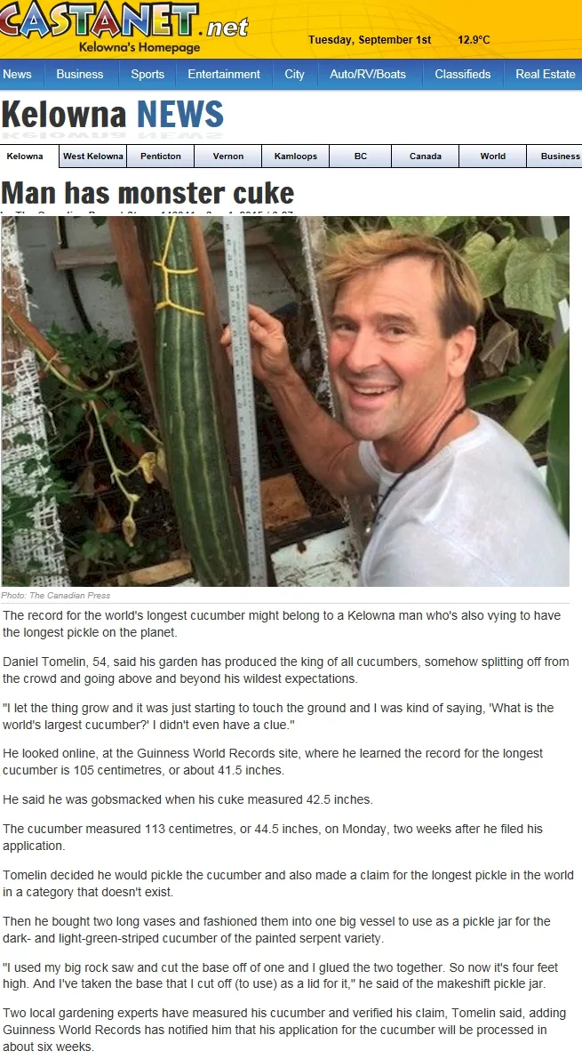 Global Okanagan: http://globalnews.ca/news/2193887/check-out-this-kelowna-mans-giant-cucumber/