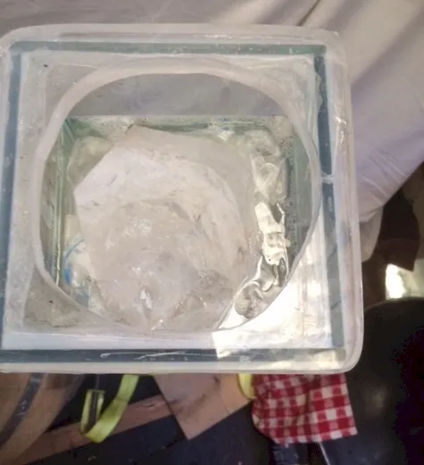 Sept 3 - Tim at Kelowna Glass to the rescue - new vessel is being fabbed and glued.