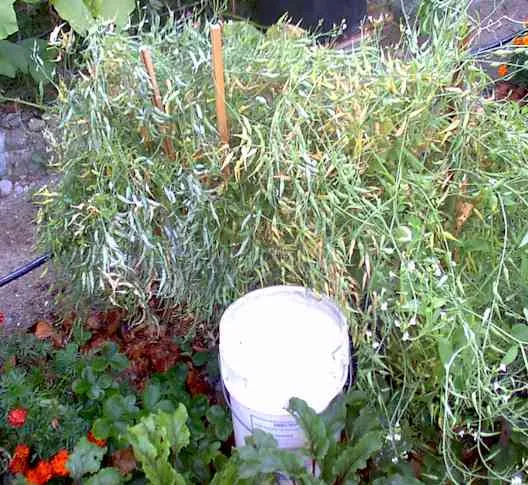 White radish plants can get really big. This one plant provided many salads from young seed pods plus a whack of seeds.